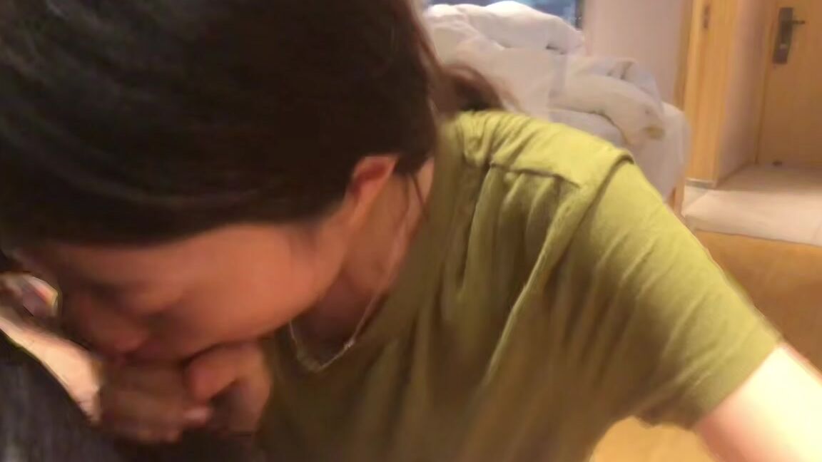 青衣美女蹲着帮男友口交